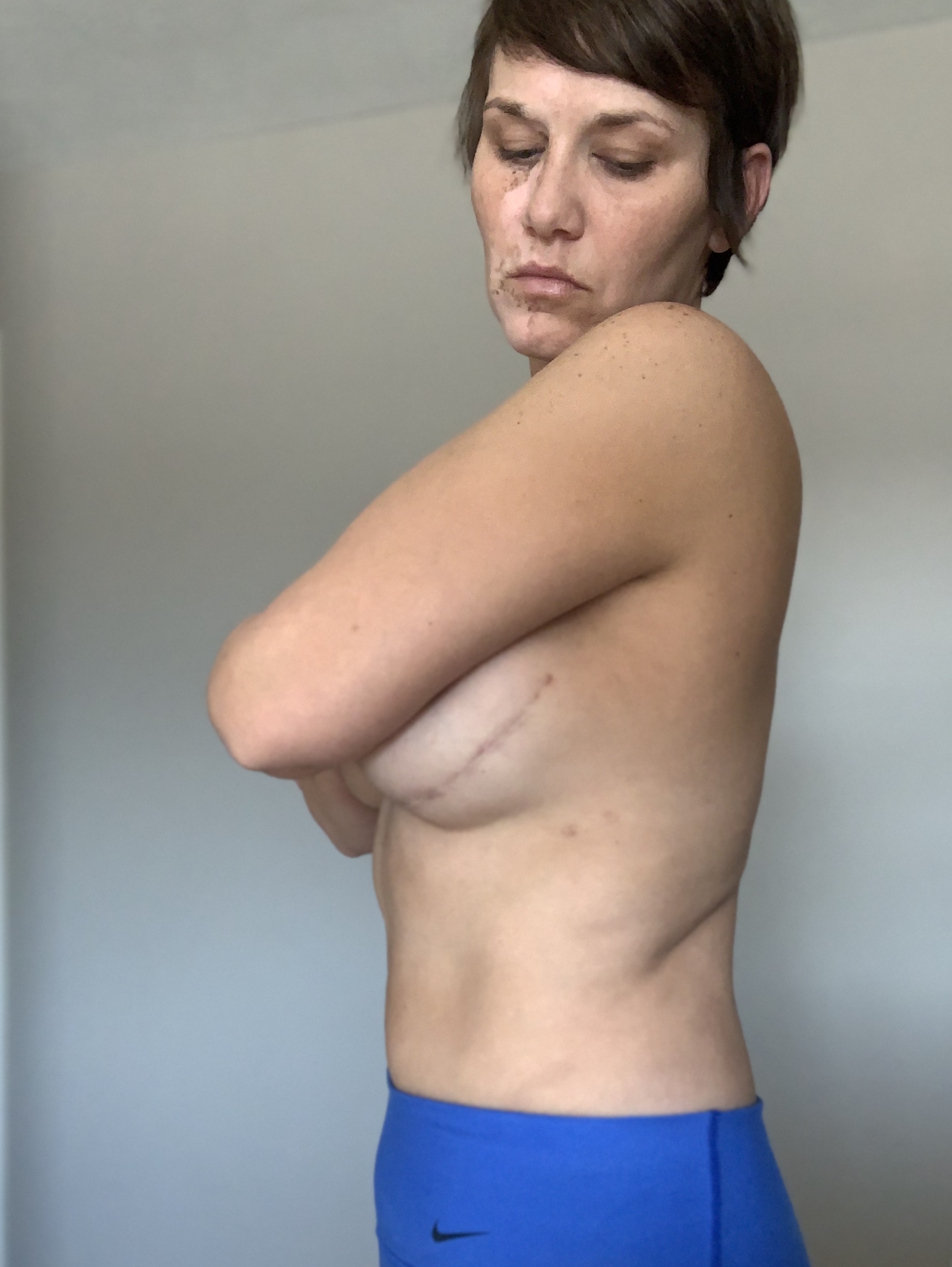 So, in the middle of November I had received a call from Dr. Depew, my pulmonologist. He wanted to meet with me but before he see me he wanted me to have a CT scan done, once again of my chest to check to see if the nodule in my lung was still there, if it had grown, etc. December 5th, I was scheduled for another CT scan of my chest, abdomen and pelvis. I received a call from Dr. Depew. He had explained the finding in my lung back in September was gone! If you can imagine the sense of relief I had! But he said there were two more findings in my pelvis. An 11mm sclerotic focus in my right iliac bone and a 9 mm sclerotic focus within the right ischium. I thought to myself, “you have got to be freaking kidding me, when will this end?” So he suggested I have a full body bone scan from head to toe. But in the mean time I was scheduled for another breast reconstruction surgery prior to the scan that I was unaware of until I met with my plastic surgeon back in October, who said I needed to have some stuff fixed. I have had people ask me if this surgery was my choice? My response was, “no.” But I also thought to myself are you freaking kidding me? Hmmm…was cancer my choice? So, for those who want to know if this second reconstruction was my choice, no it wasn’t a choice it was something that needed to be done because cancer decided to take my breast.
